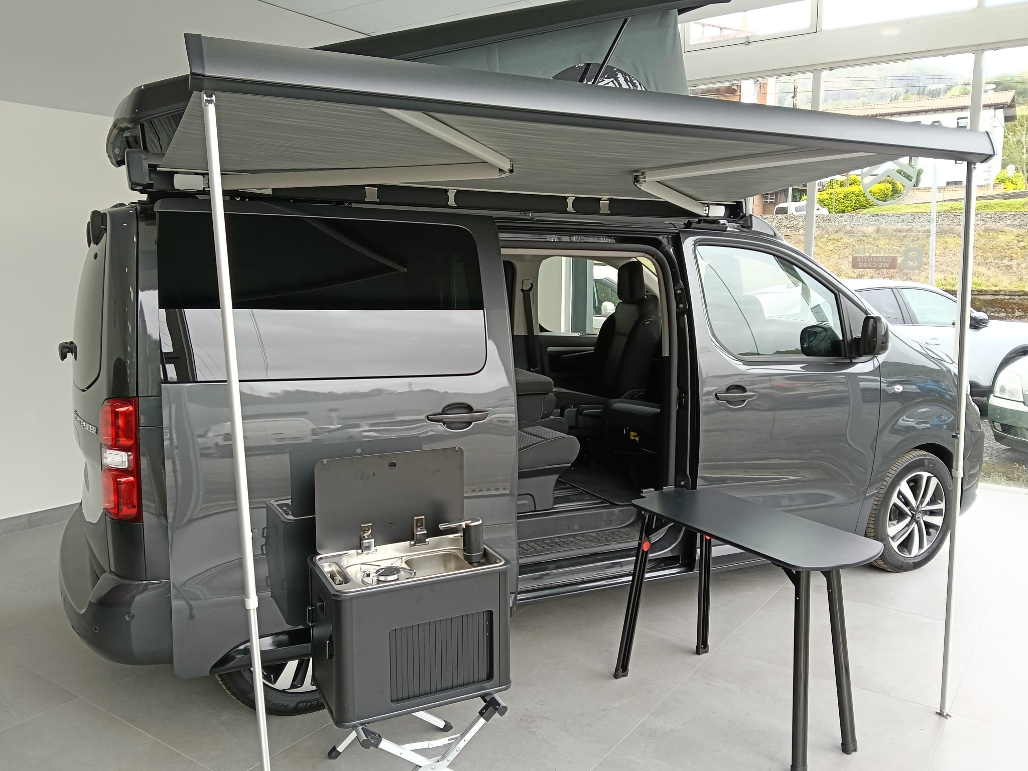 - Accesorios: Calefacción estacionaria, Batería auxiliar Litio, Toma Exterior 220V, Inversor 500W, Toldo Black Edition, Nevera 25l con anclaje.