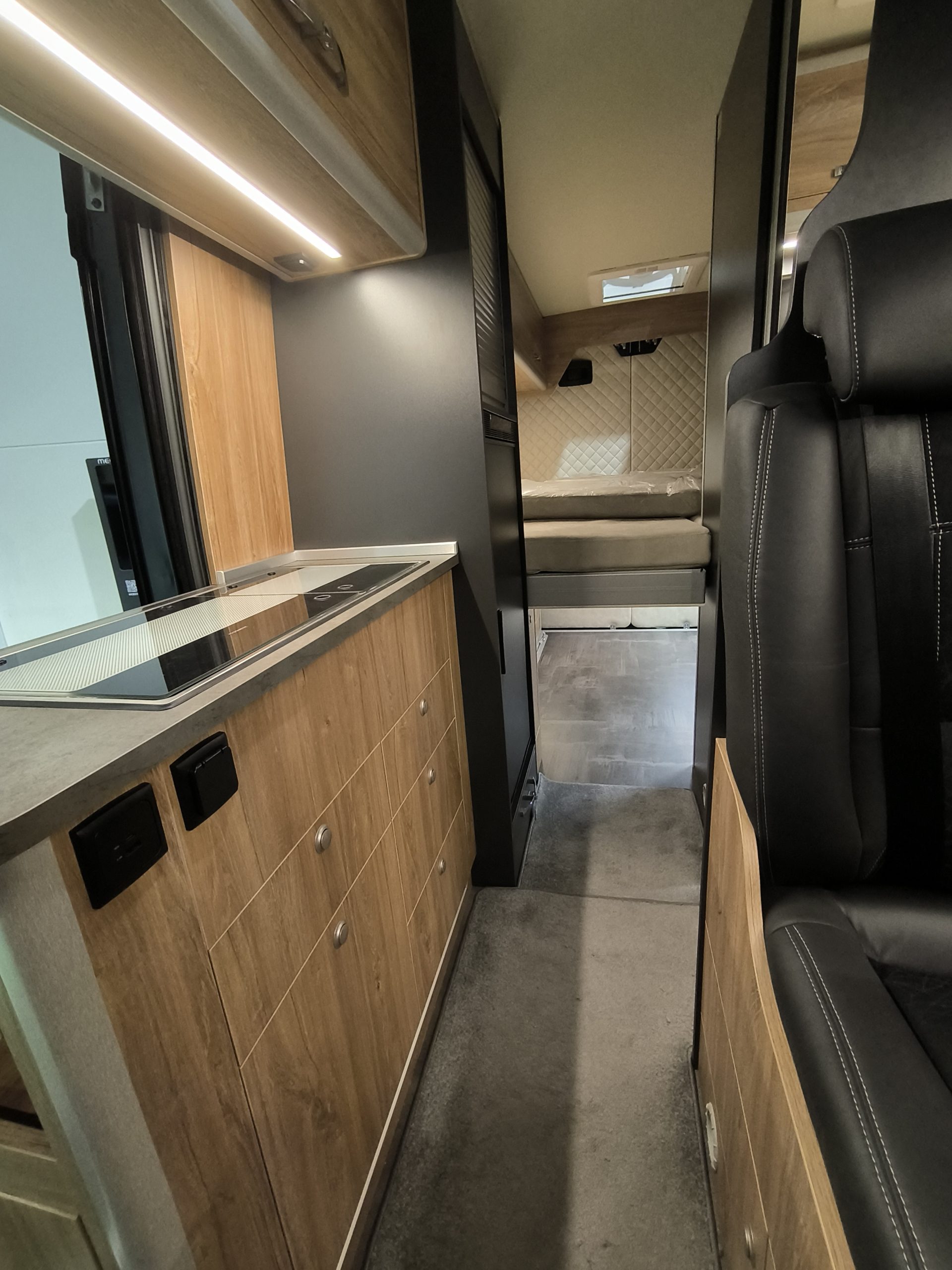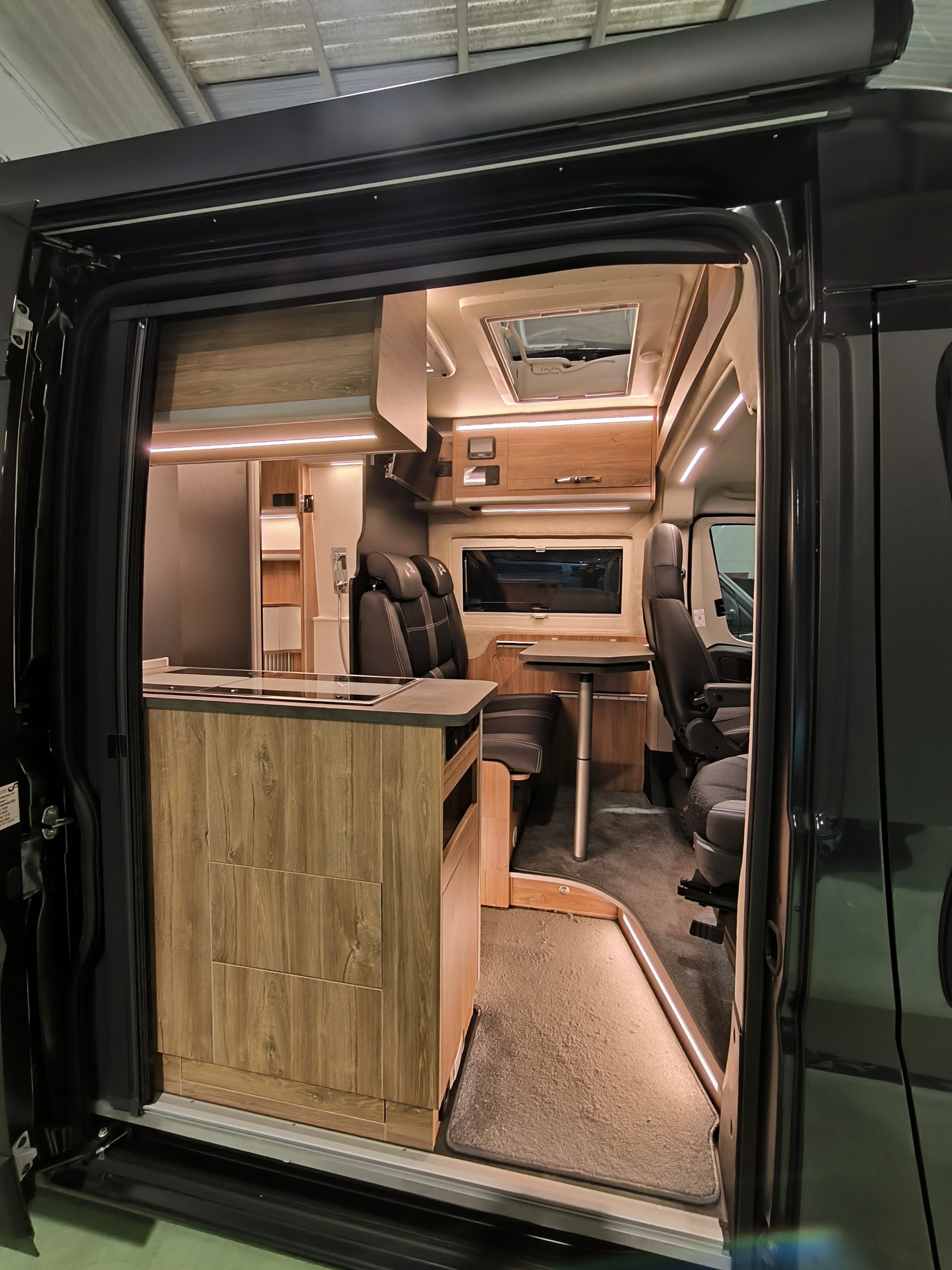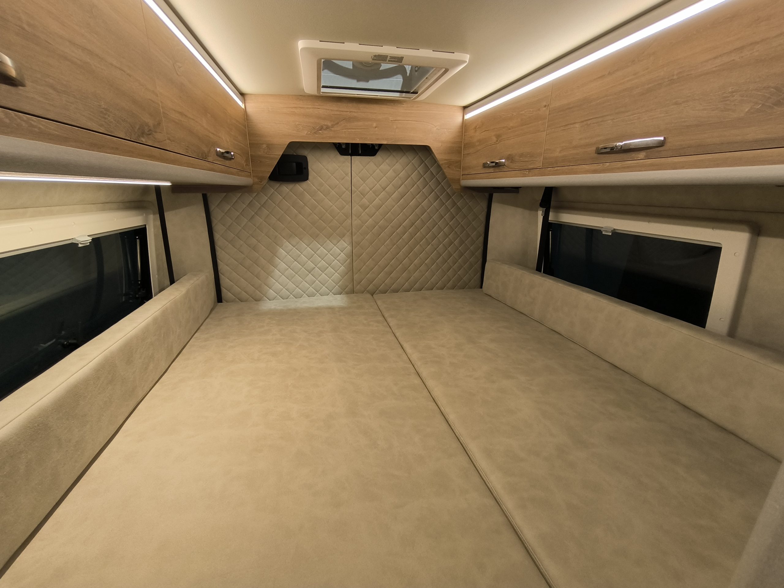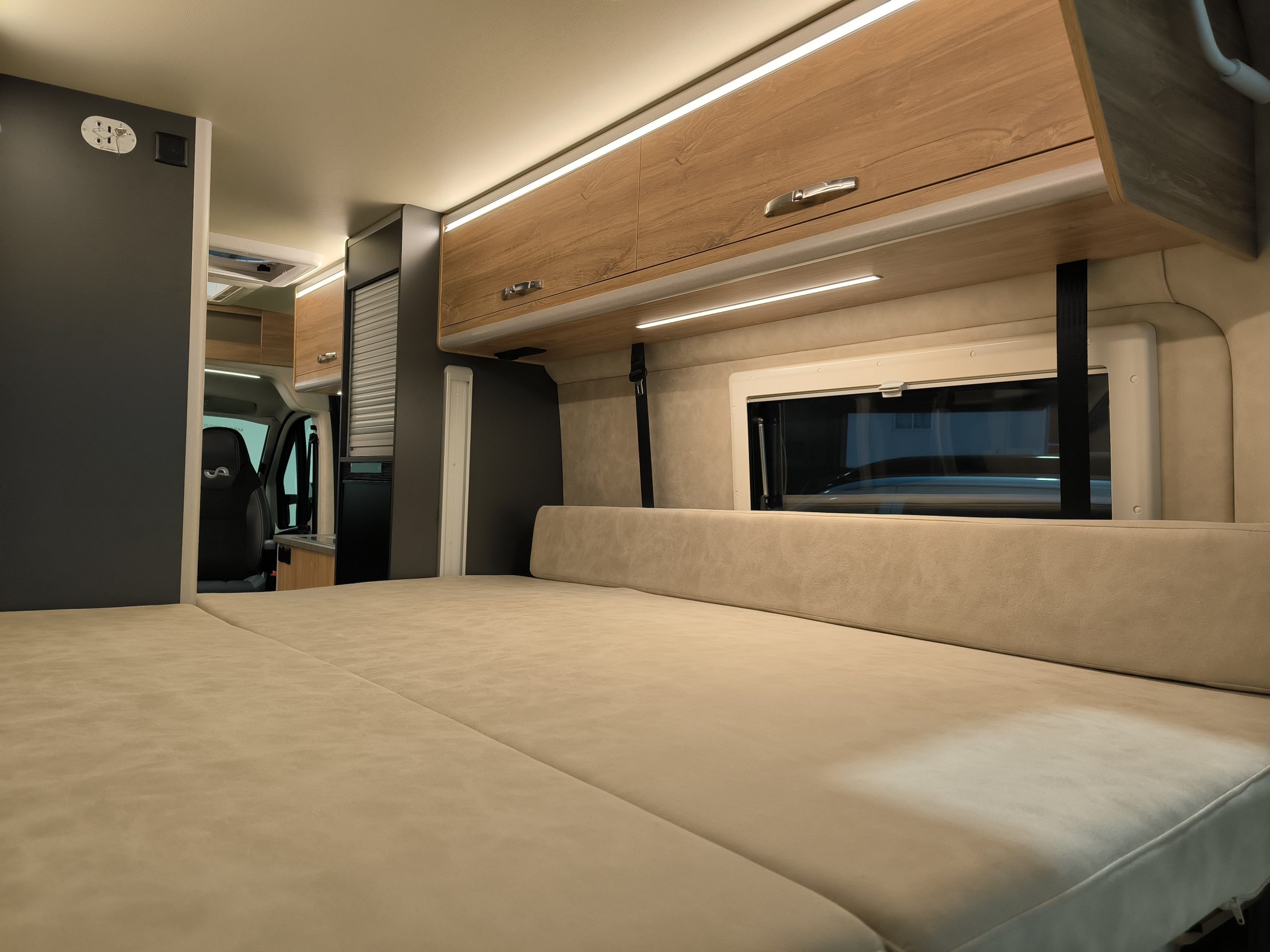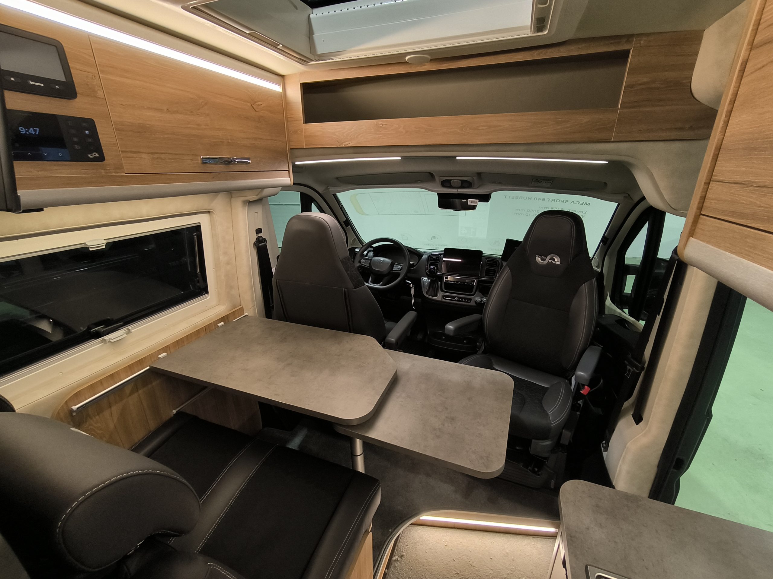 - Opciones/Equipamiento destacado: Motor 180CV tracción delantera, Chasis reforzado, Cierre central eléctrico, Asistente arranque en pendiente, ASR, Asistente de descenso en pendiente, Sistema de control de presión en neumáticos, Control de crucero, Luces antiniebla, Aire acondicionado en cabina, Victron Electric con cargador DC/DC, Pantalla de control Sismarine Smart, Válvula eléctrica del depósito de aguas residuales, Aguas limpias 80l, Aguas residuales 80l.