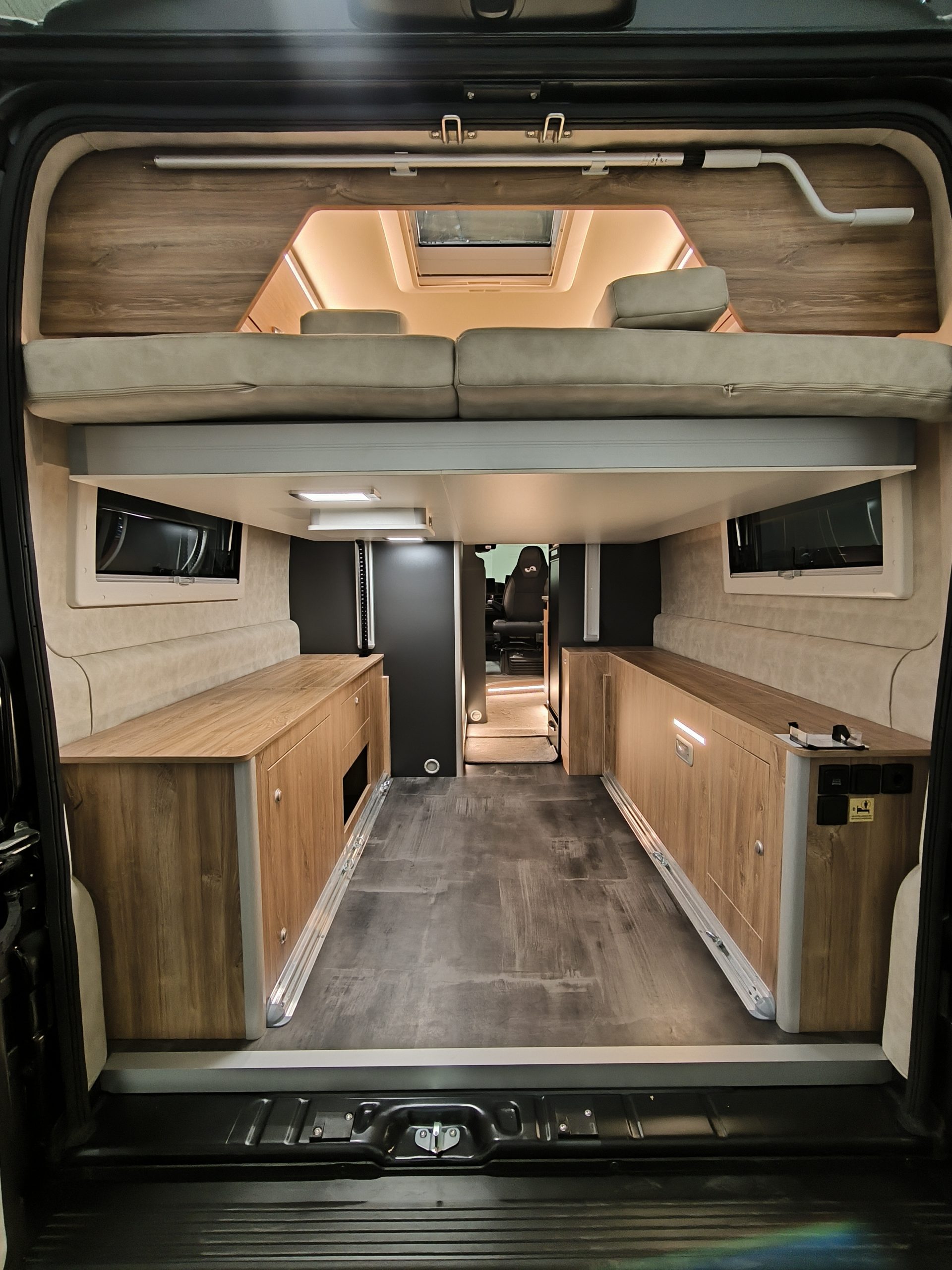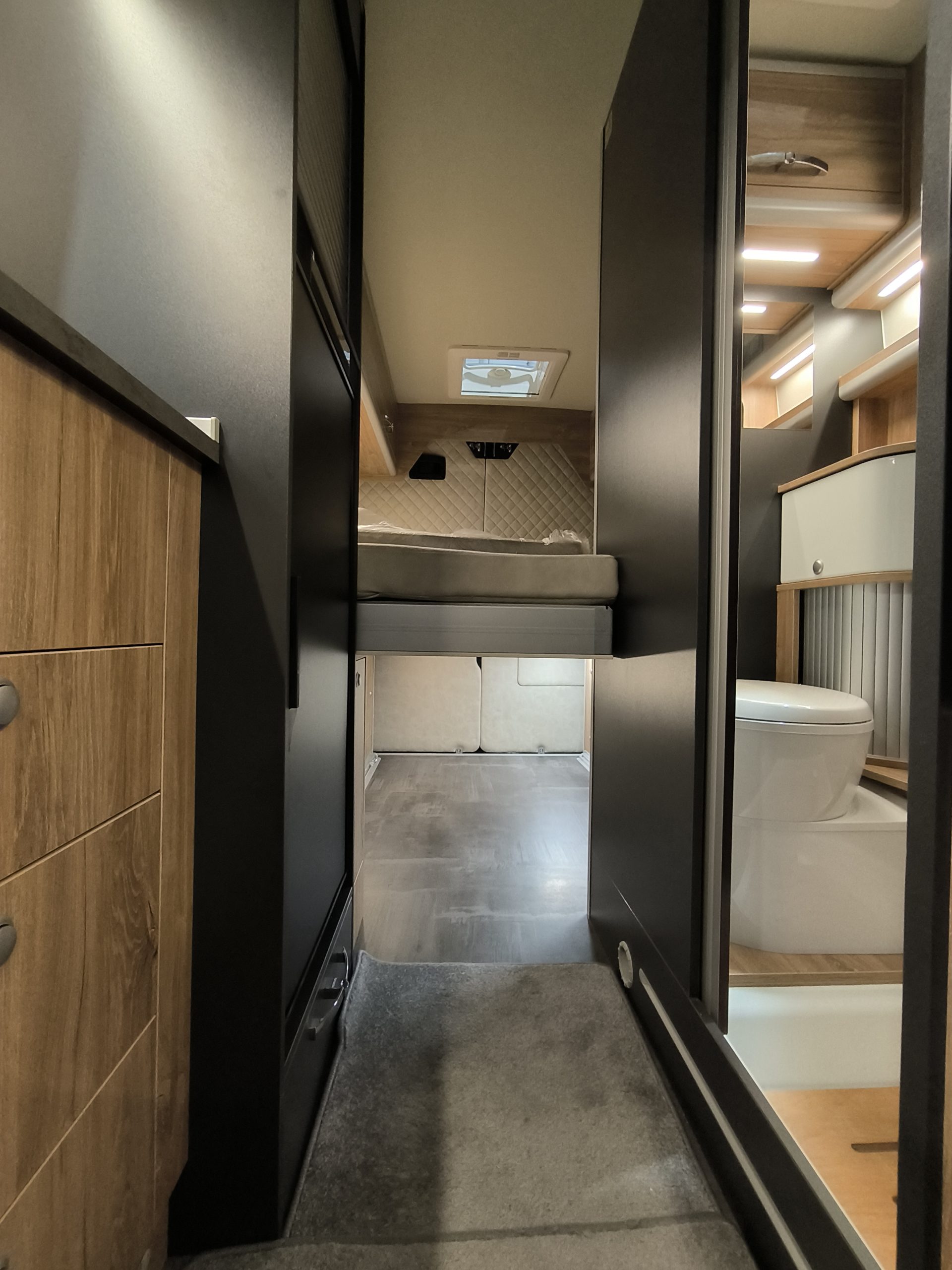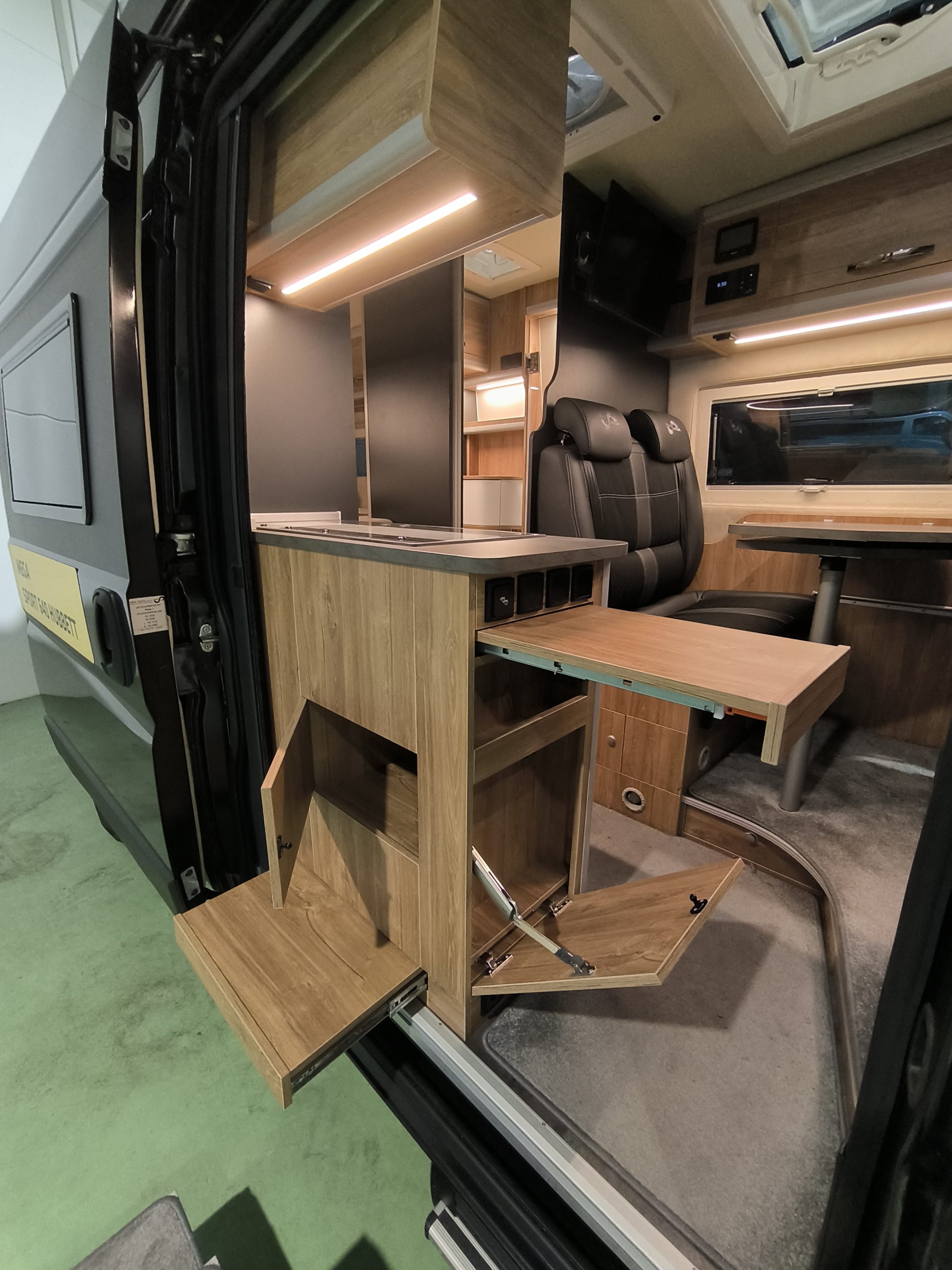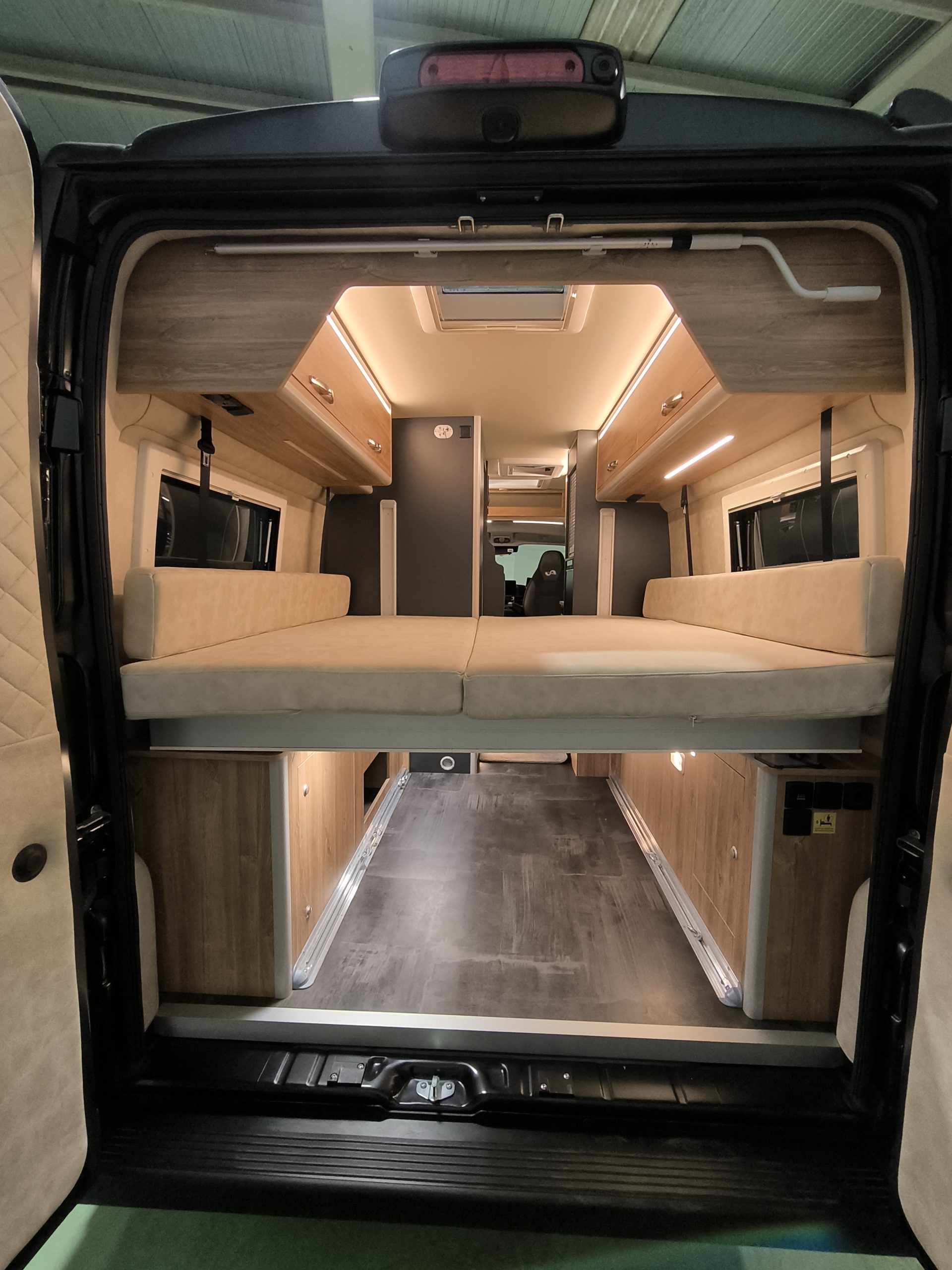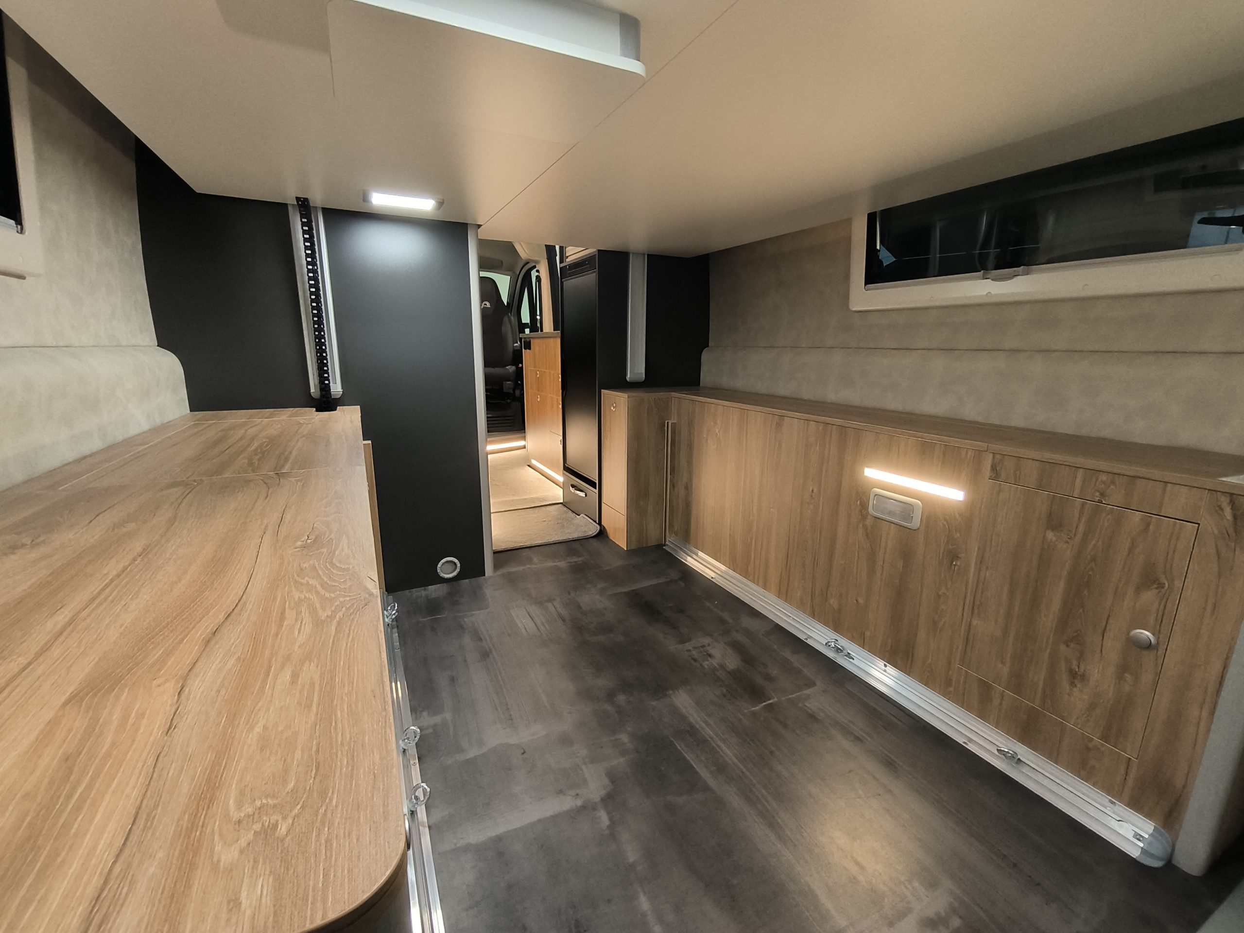 - Opciones/Equipamiento destacado: Motor 180CV tracción delantera, Chasis reforzado, Cierre central eléctrico, Asistente arranque en pendiente, ASR, Asistente de descenso en pendiente, Sistema de control de presión en neumáticos, Control de crucero, Luces antiniebla, Aire acondicionado en cabina, Victron Electric con cargador DC/DC, Pantalla de control Sismarine Smart, Válvula eléctrica del depósito de aguas residuales, Aguas limpias 80l, Aguas residuales 80l.